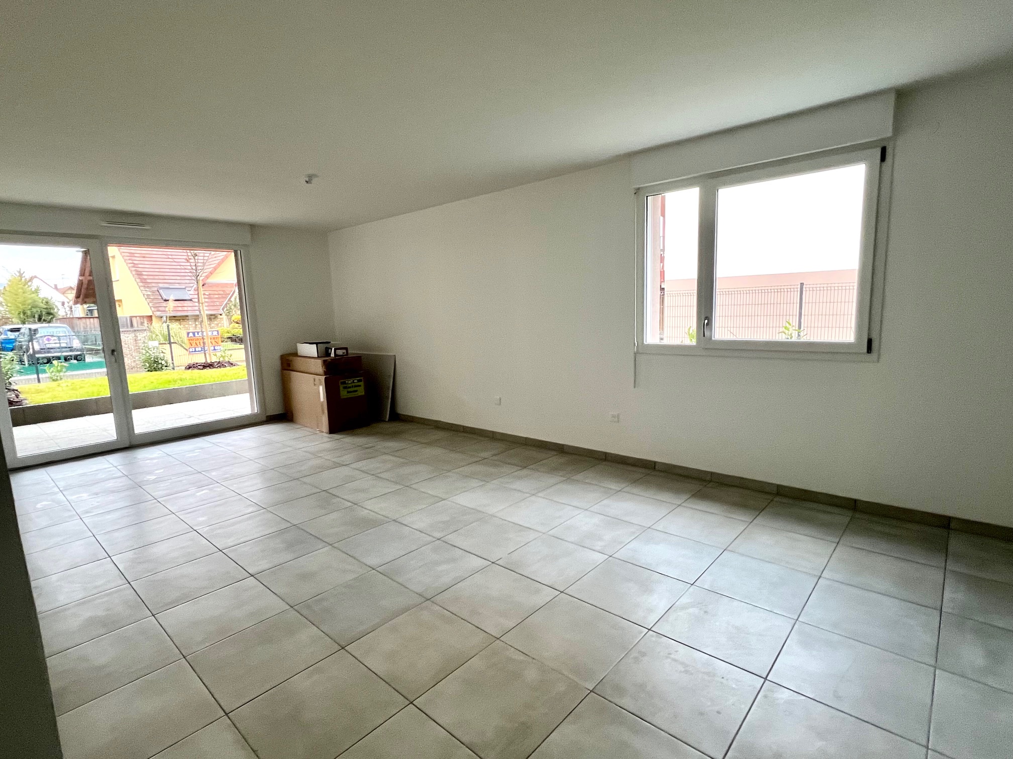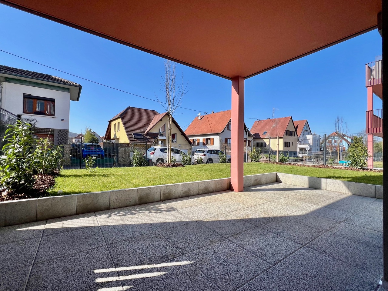 Dans résidence neuve - 1er occupation Très bel appartement de type T4 au rez-de-jadin, comprenant : une entrée avec placard, un séjour avec espace cuisine ouverte donnant sur une belle terrasse et un grand jardin privatif. Trois chambres, dont une avec une salle de douche. Une salle de bains et un wc séparé. Chauffage individuel au gaz. En annexe : Deux garages inclus. Frais de notaire réduits Prix de vente 390 000 € frais d'agence à la charge du vendeur