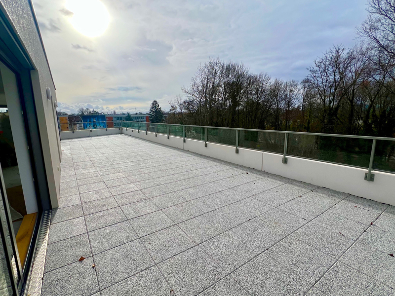 Au début de la Robertsau, proche des Institutions Européennes, du tram et des arrets de bus. Dans une résidence neuve de très grand standing, magnifique attique de 5 pièces avec grande terrasse. Première occupation ! Situé au 4ème étage avec ascenseur, l'appartement se compose d'une entrée avec placard, d'un vaste séjour très lumineux avec cuisine entièrement équipée, l'enemble donnant sur une grande terrasse de plus de 100 m2. Une suite parentale, comprenant : un dressinsg, une salle de bains (baignoire et douche balnéo) et d'un wc. Trois autres chambres, deux salles de bains (baignoire et douche), un wc visiteurs, une buanderie/lingerie. Très belles prestations : - parquet sol - Possibilité cheminée dans le séjour - Cuisine entièrement équipée - Appareillages sanitaires type balnéo - Domotique intégrée - Plancher chauffant et raffraichissant (Pompe à chaleur - Géothermie) - Brises soleil orientables - Grande terrasse - Parkings au sous-sol - 2 caves Prix du bien net vendeur 1 350 000 € + 67 000 € d'honoraires à la charge de l'acquéreur, soit un prix total de 1 417 000 €.
