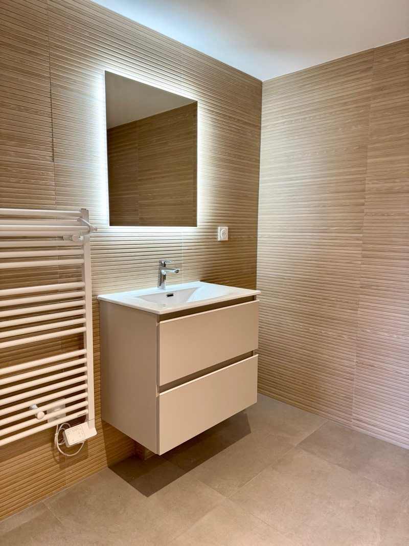 • Faïence salle de bains, toute hauteur et sur tous les murs