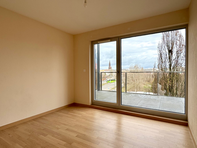 26 Rue de la Thumenau. Proche des commerces, du Tram et des axes autoroutiers. VAUBAN Immobilier vous propose dans une résidence récente, un beau et lumineux 4 pièces tranversant de 102,60 m2 situé au 4ème étage avec ascenseur comprenant, une entrée avec placard, un beau et grand séjour de 40m2 avec une cuisine équipée ouverte donnant accès sur une terrasse de 19 m2, trois chambres avec chacune un accès terrasse de 9,96 m2 (les peintures des deux chambres de couleur seront repeintes en blanc), une salle de bains, un wc séparé, une buanderie et un débarras. Chauffage au sol et production d'eau chaude collectifs au gaz. Compris dans le loyer, une place de parking en sous-sol. Les visites commenceront le mercredi 25/02 de 16h30 à 18h. Sur rdv uniquement.
